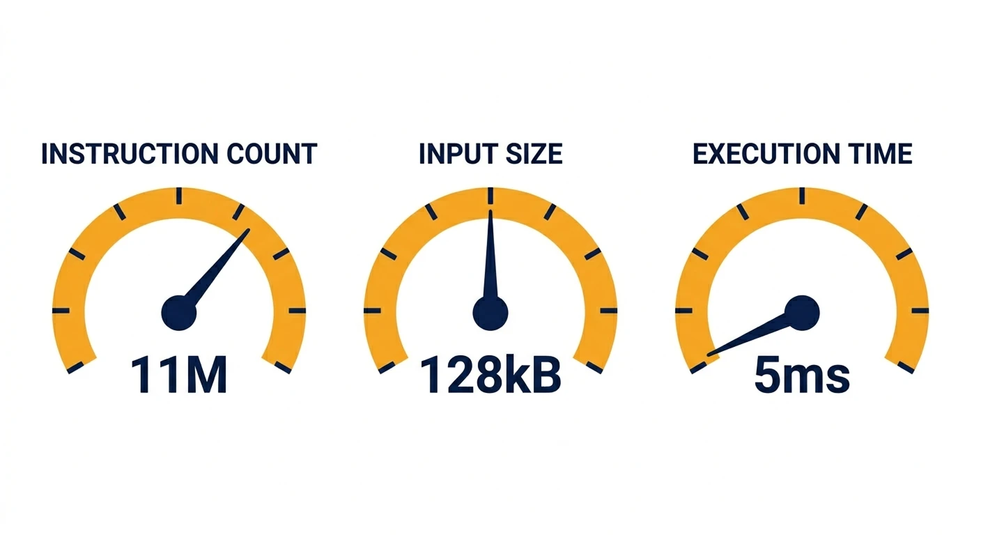 - Instruction limit: 11 million — each function can execute at most 11 million WebAssembly instructions. For simple price calculations, that is more than enough. With complex logic involving a large number of SKUs and customer combinations, this limit becomes a real barrier — developers often encounter it when working with cart transform functions for larger carts.