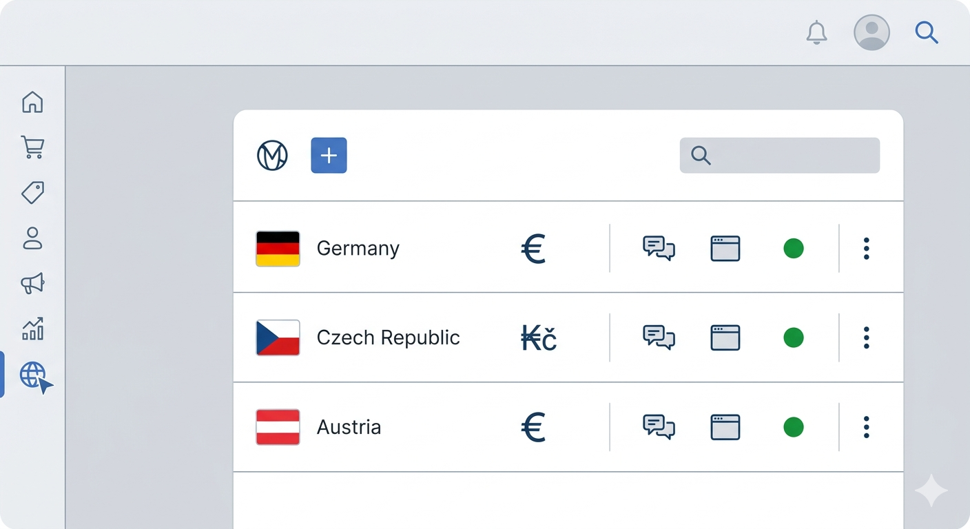 Firma A — módny eshop so sídlom na Slovensku, expanduje do Česka, Maďarska a Rakúska. Sortiment je identický, tím je centrálny, regionálne kampane minimálne. Tu je Markets jasná voľba: jeden backend, tri lokalizácie, automatický