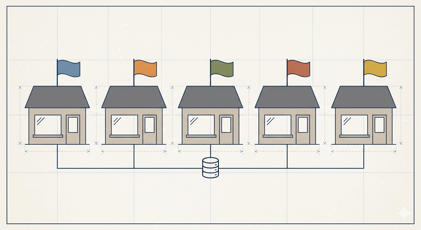 - Regionálna autonómia vyžadovaná obchodným modelom — ak má každý trh vlastný lokálny tím, ktorý potrebuje plnú kontrolu nad sortimentom, cenami, kampaniami a zákazníkmi, expansion store dáva každému tímu ten priestor bez rizika, že si navzájom prepíšu nastavenia.