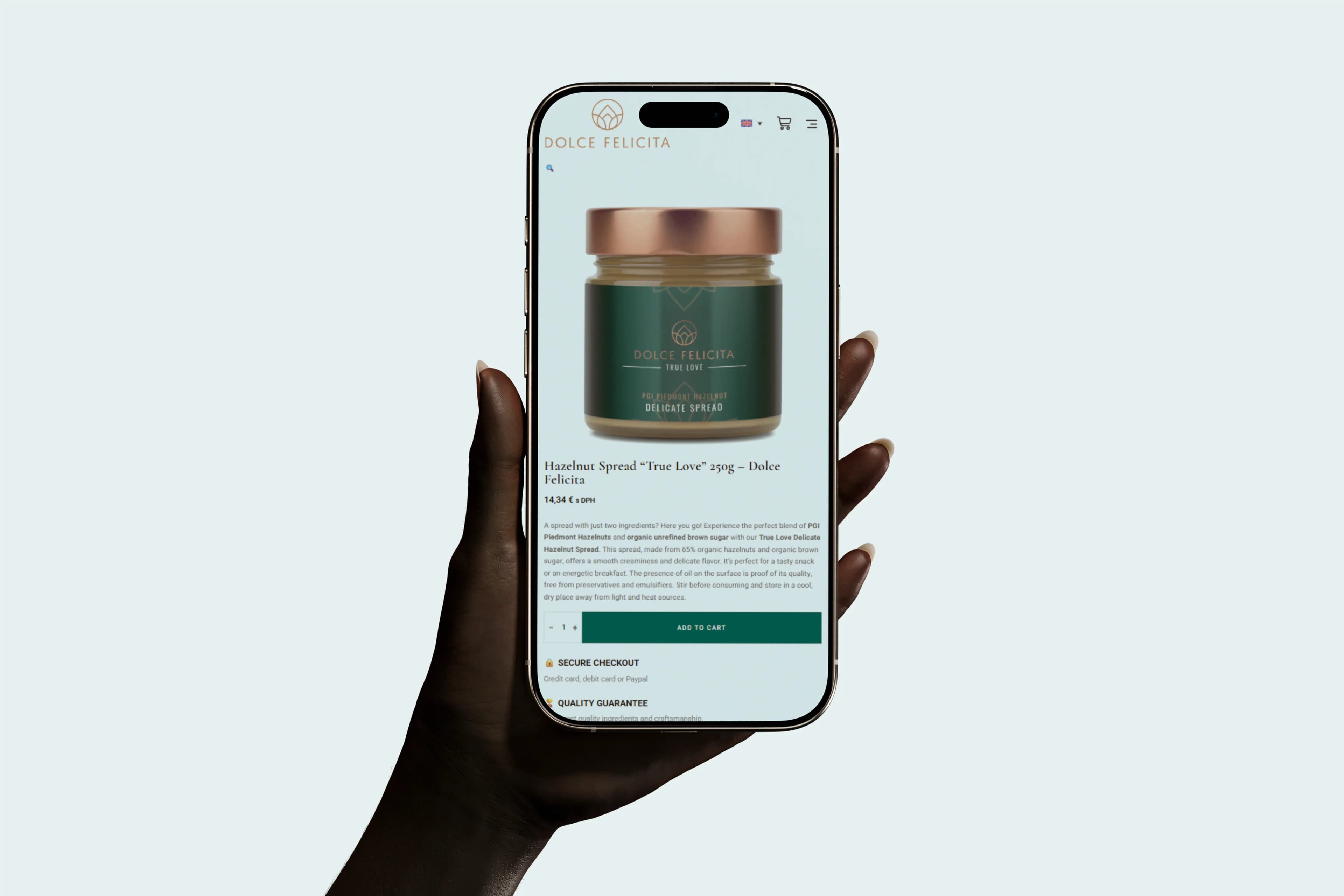 Pre značku Dolce Felicita sme navrhli a vyvinuli prémiový brandový eshop zameraný na predaj ručne vyrábaných lieskovoorieškových nátierok. Okrem klasického B2C predaja s doručením domov sme vybudovali aj B2B sekciu pre veľkoobchodných partnerov a firemné darčeky. Celý eshop sme postavili s dôrazom na emočný branding, kvalitné produktové stránky a receptovú sekciu, ktorá funguje ako nástroj na content marketing a SEO.