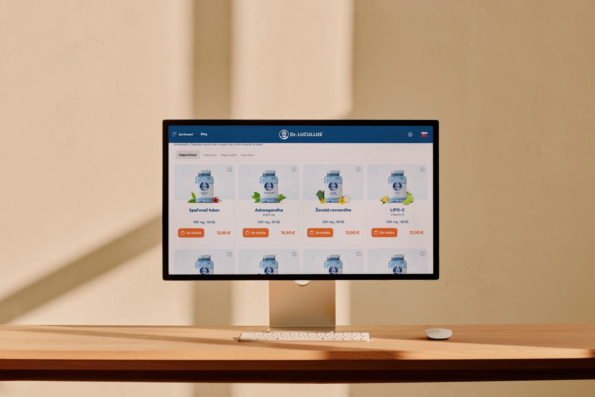 Dr. LUCULLUS je rýchlo rastúci slovenský eshop zameraný na vitamíny, minerály a výživové doplnky. Celý eshop je postavený ako custom riešenie na mieru, bez použitia hotových platforiem, čo zákazníkom prináša rýchly, prehľadný a plynulý nákupný zážitok. Na projekte sme sa podieľali ako vývojová posila, predovšetkým v oblasti admin panelu a zobrazovania dát na strane zákazníka.